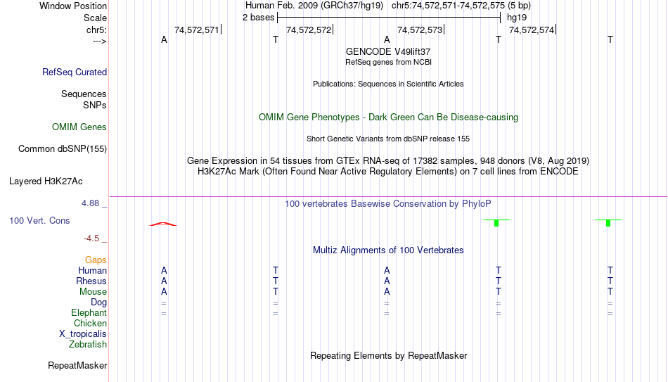 - YY1[chr5:74572571-74572575]