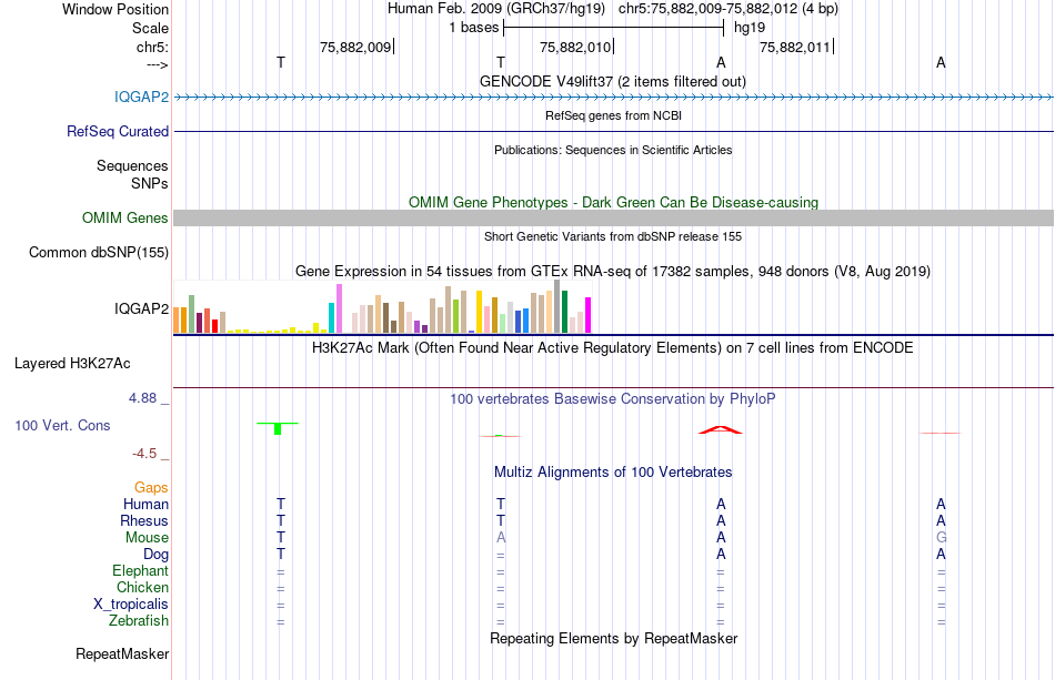 - MYB[chr5:75882009-75882012]