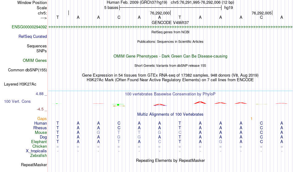 - FOXH1[chr5:76291995-76292006]