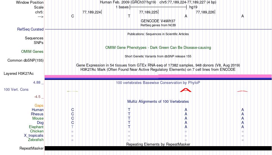 - MYB[chr5:77189224-77189227]