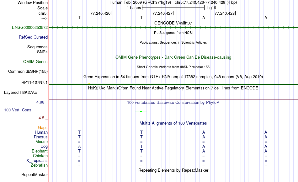 - MYB[chr5:77240426-77240429]