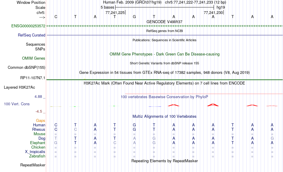 - FOXB1[chr5:77241222-77241233]