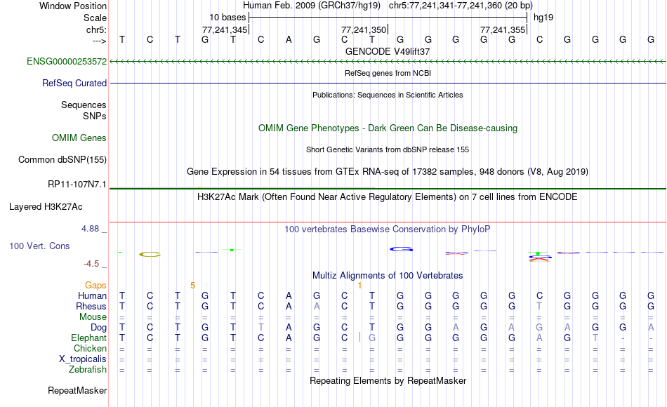 - CTCF[chr5:77241341-77241360]