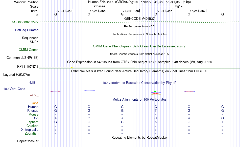 - SP1[chr5:77241353-77241358]