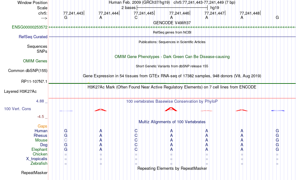 - SOX10[chr5:77241443-77241449]