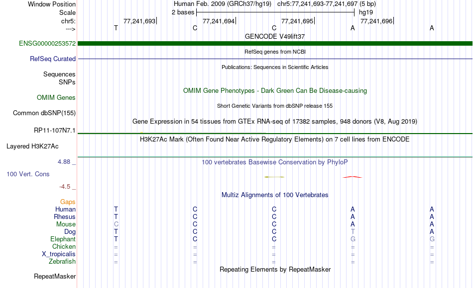 - SRF[chr5:77241693-77241697]