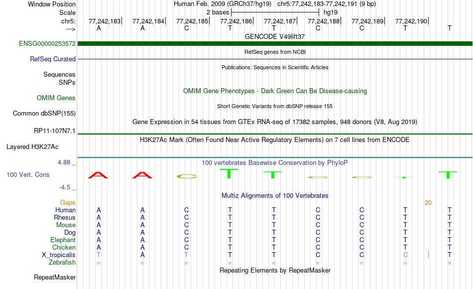 - FEV[chr5:77242183-77242191]