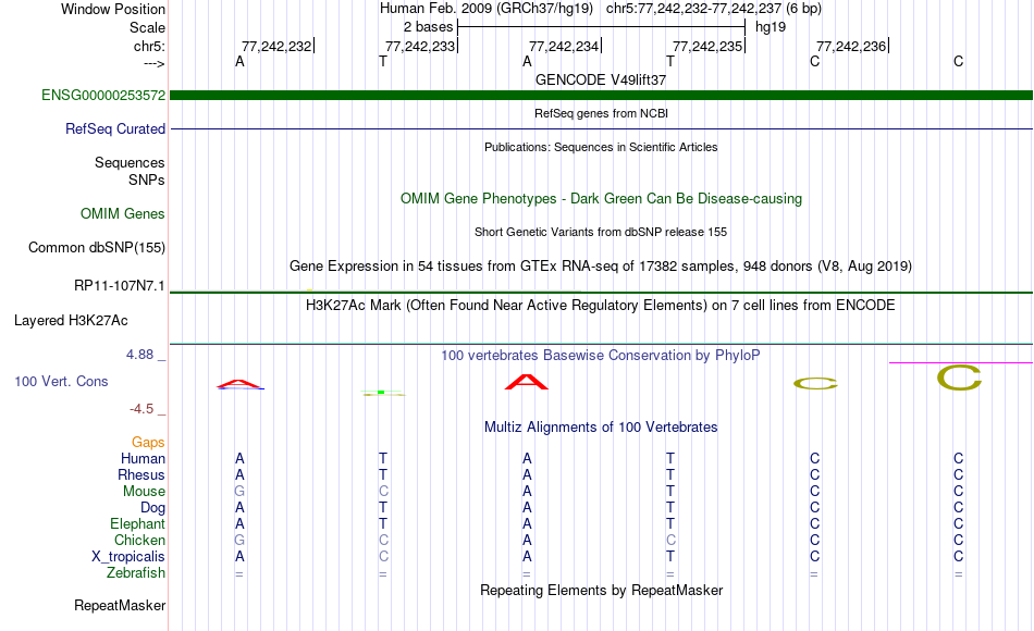 - GATA2[chr5:77242232-77242237]