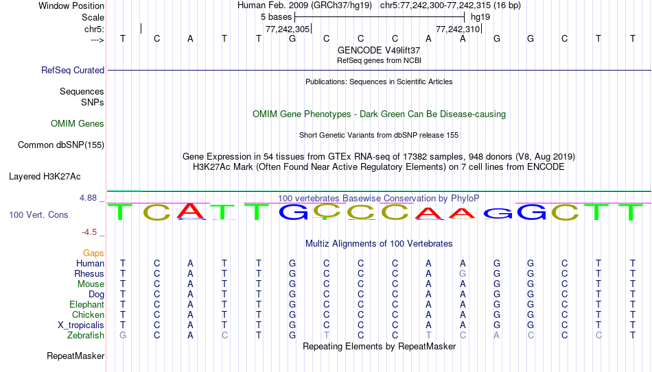 - TFAP2C[chr5:77242300-77242315]