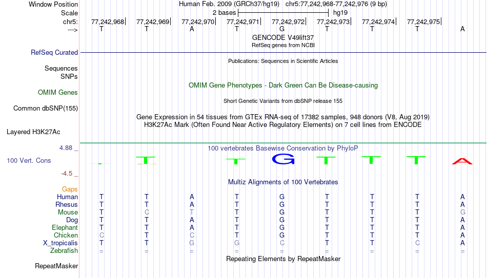 - FOXL1[chr5:77242968-77242976]
