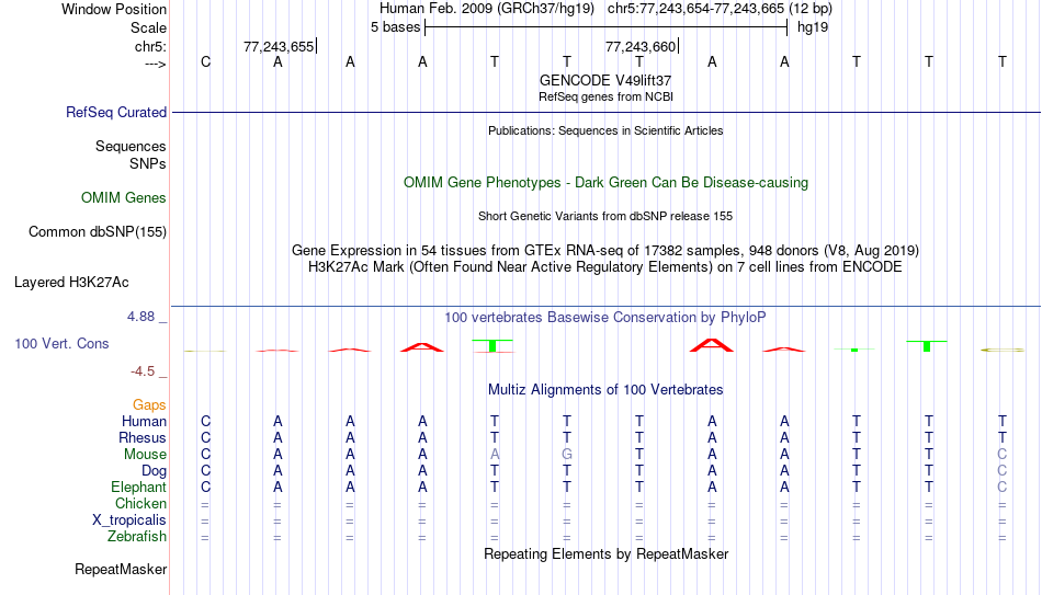 - PHOX2A[chr5:77243654-77243665]