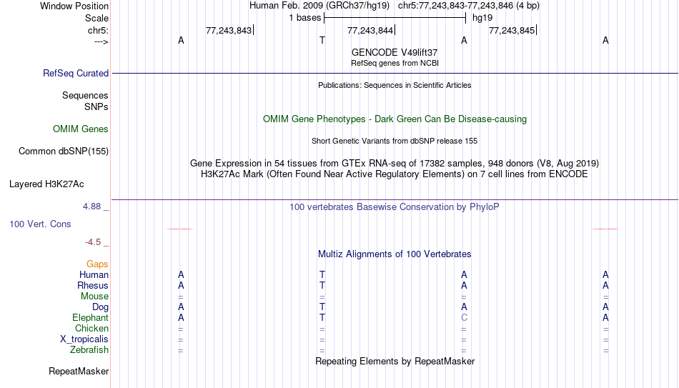 - MYB[chr5:77243843-77243846]