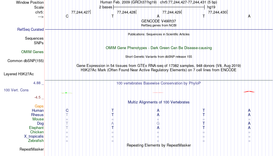 - TEAD2[chr5:77244427-77244431]