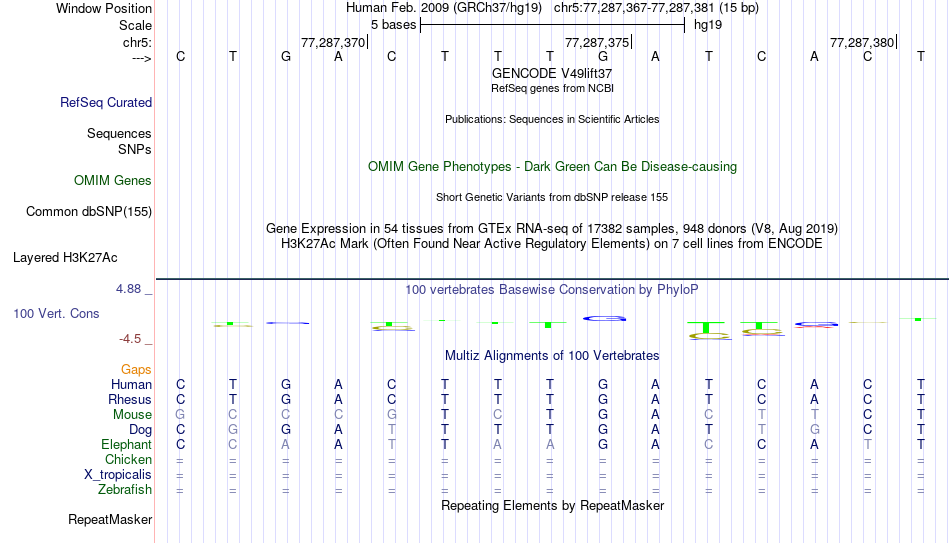 - TCF7L2[chr5:77287367-77287381]