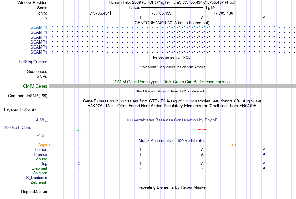 - MYB[chr5:77705434-77705437]