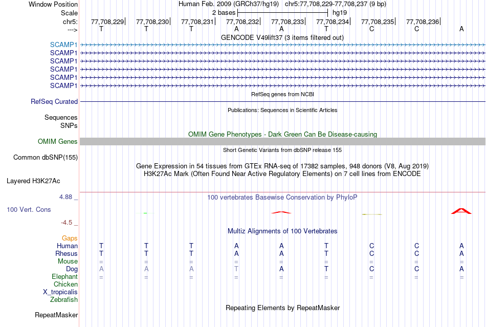 - RHOXF1[chr5:77708229-77708237]