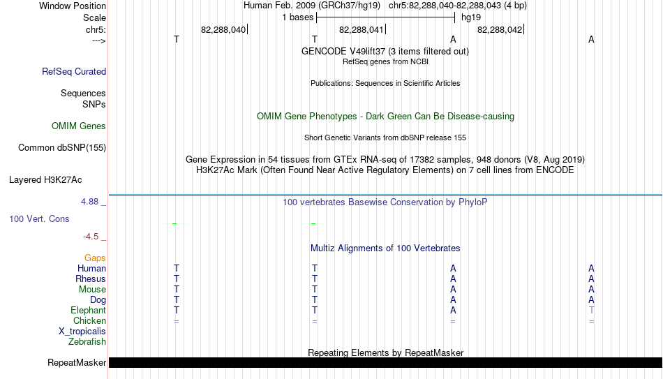- MYB[chr5:82288040-82288043]