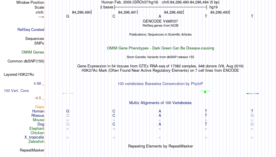 - YY1[chr5:84296490-84296494]