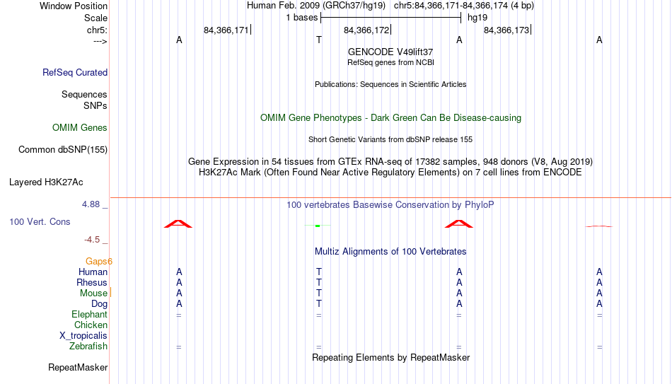 - MYB[chr5:84366171-84366174]