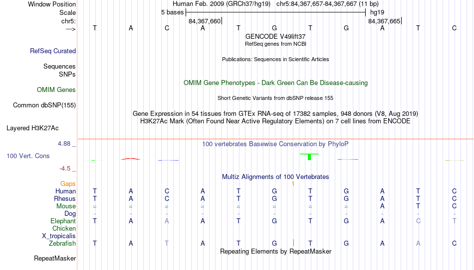 - MAX[chr5:84367657-84367667]