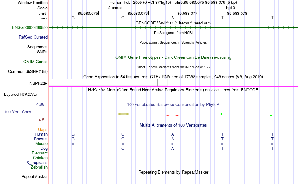 - YY1[chr5:85583075-85583079]
