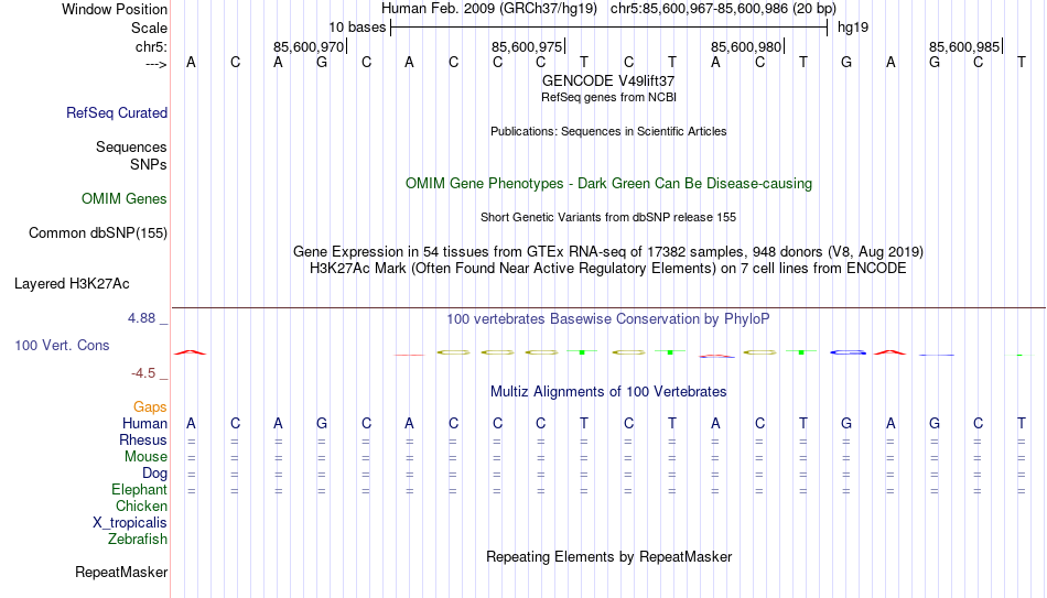 - CTCF[chr5:85600967-85600986]