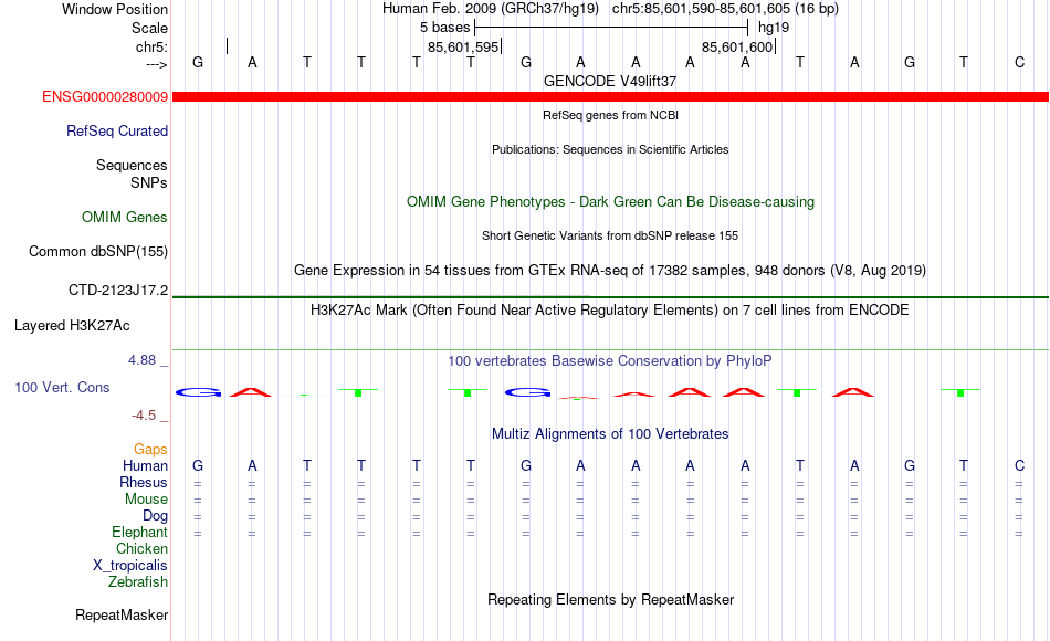 - MEF2C[chr5:85601590-85601605]