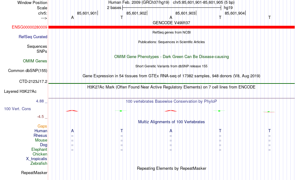- YY1[chr5:85601901-85601905]