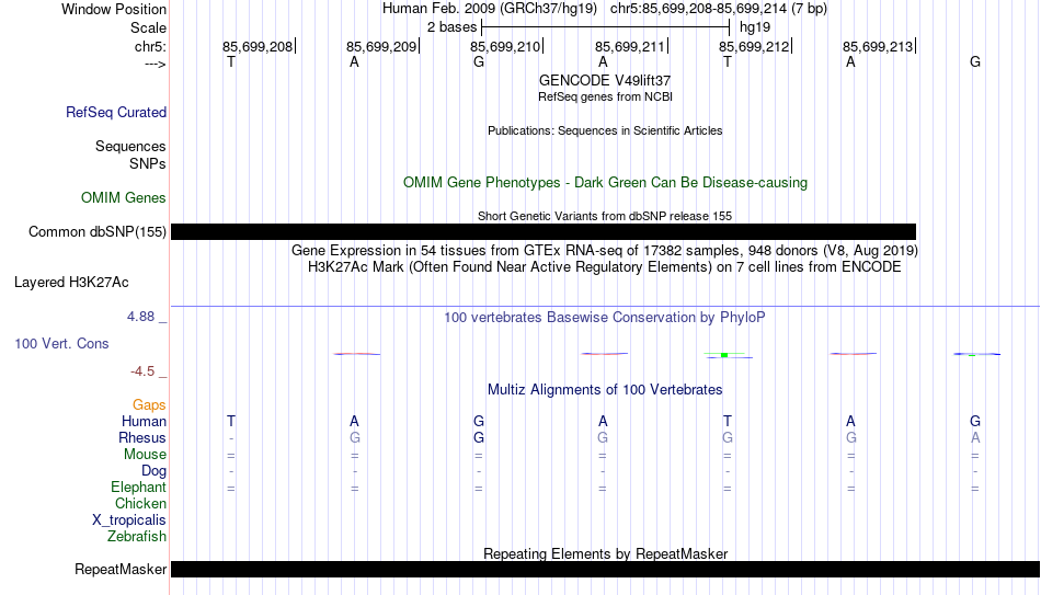 - GATA3[chr5:85699208-85699214]