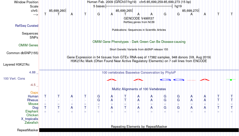 - GATA2[chr5:85699259-85699273]