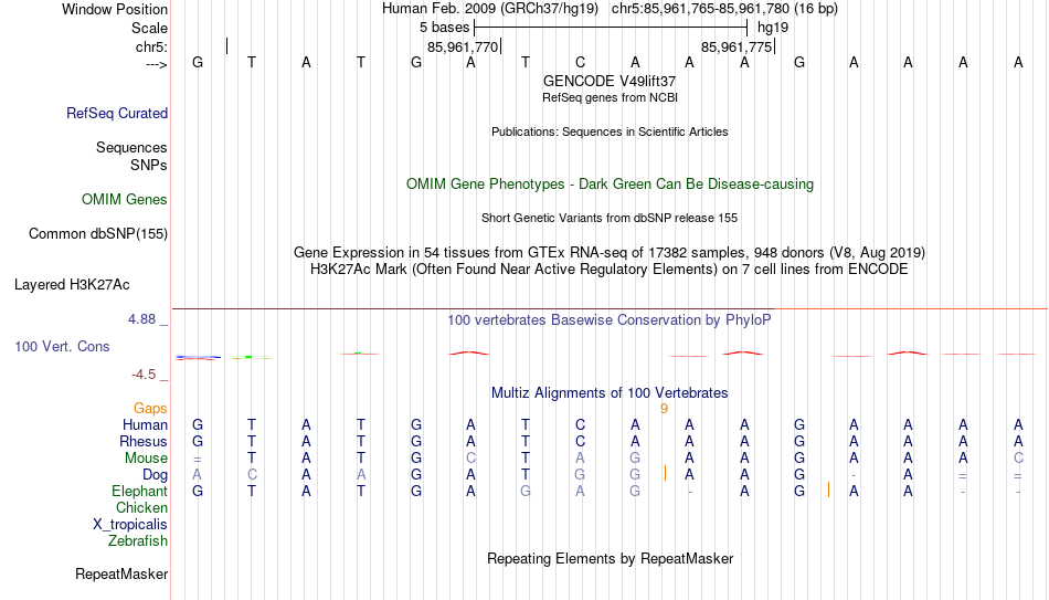 - LEF1[chr5:85961765-85961780]