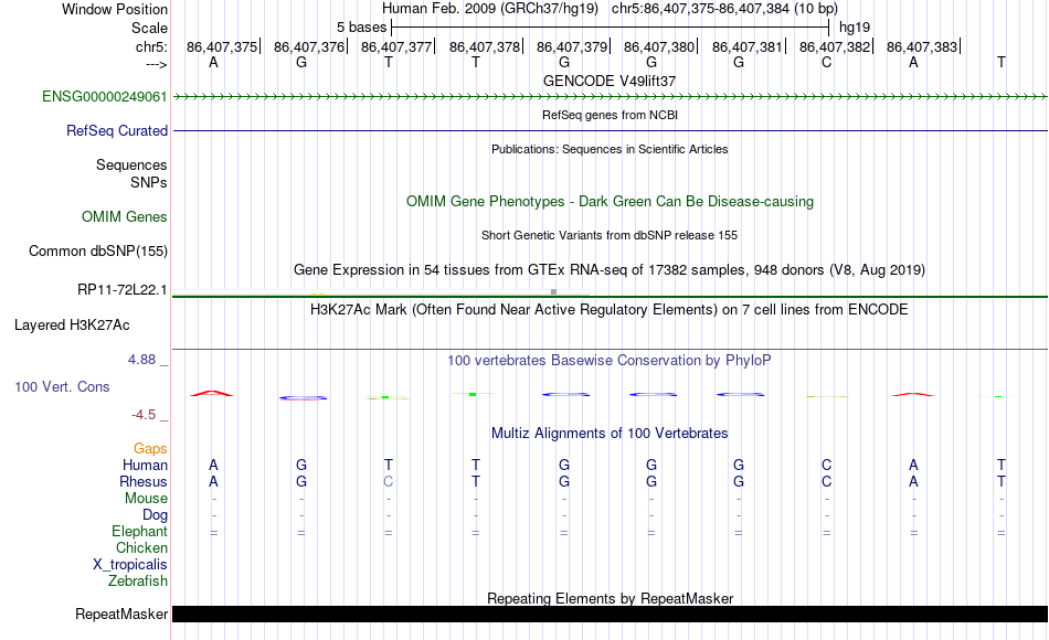 - HIC2[chr5:86407375-86407384]