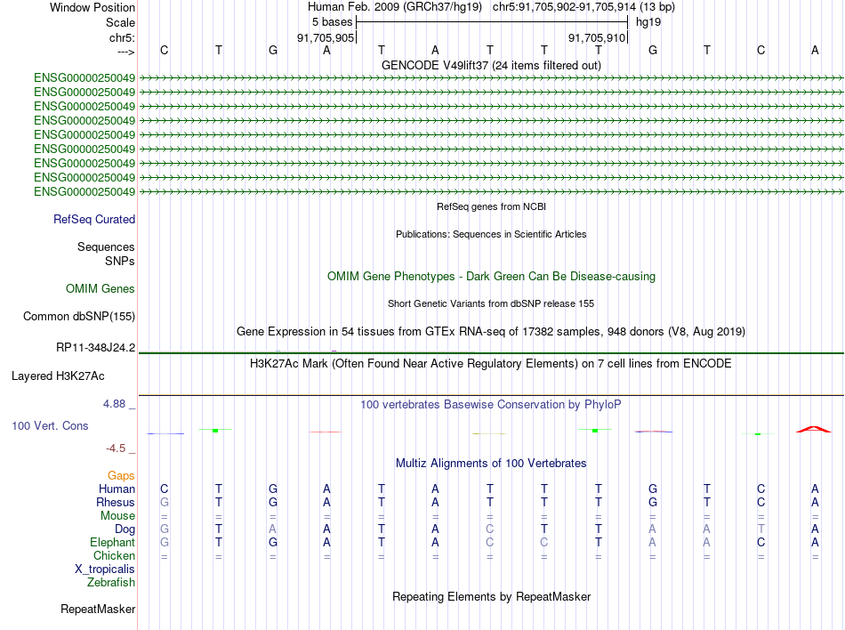 - PKNOX2[chr5:91705902-91705914]