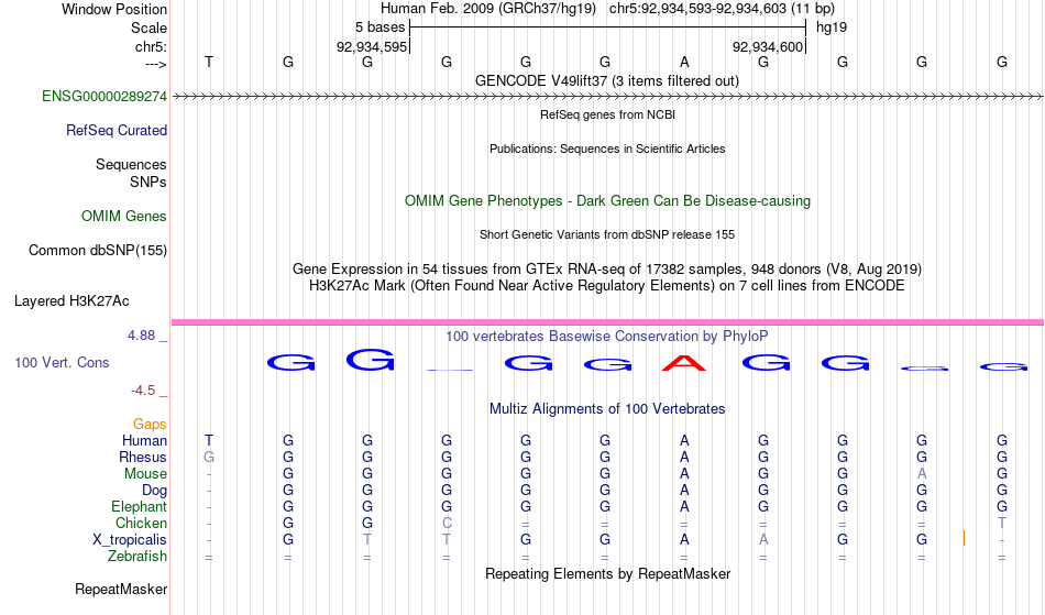 - SP1[chr5:92934593-92934603]
