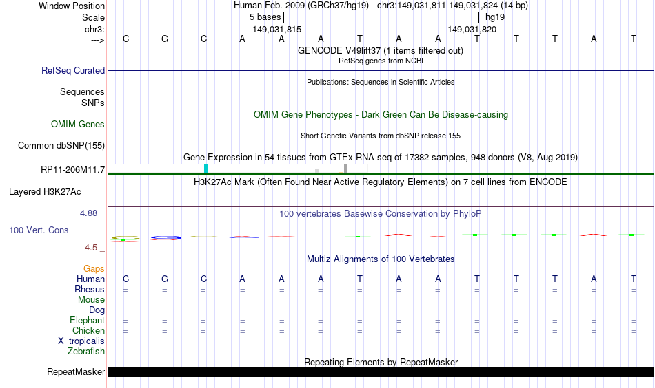 - HNF1B[chr3:149031811-149031824]