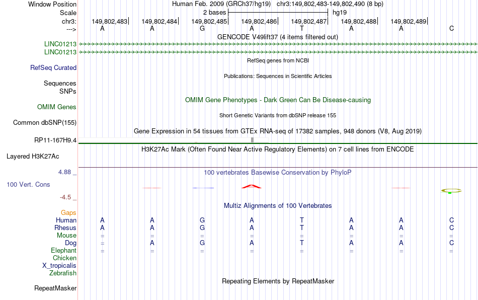 - GATA3[chr3:149802483-149802490]