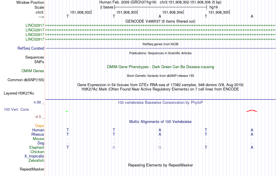 - TEAD2[chr3:151908302-151908306]