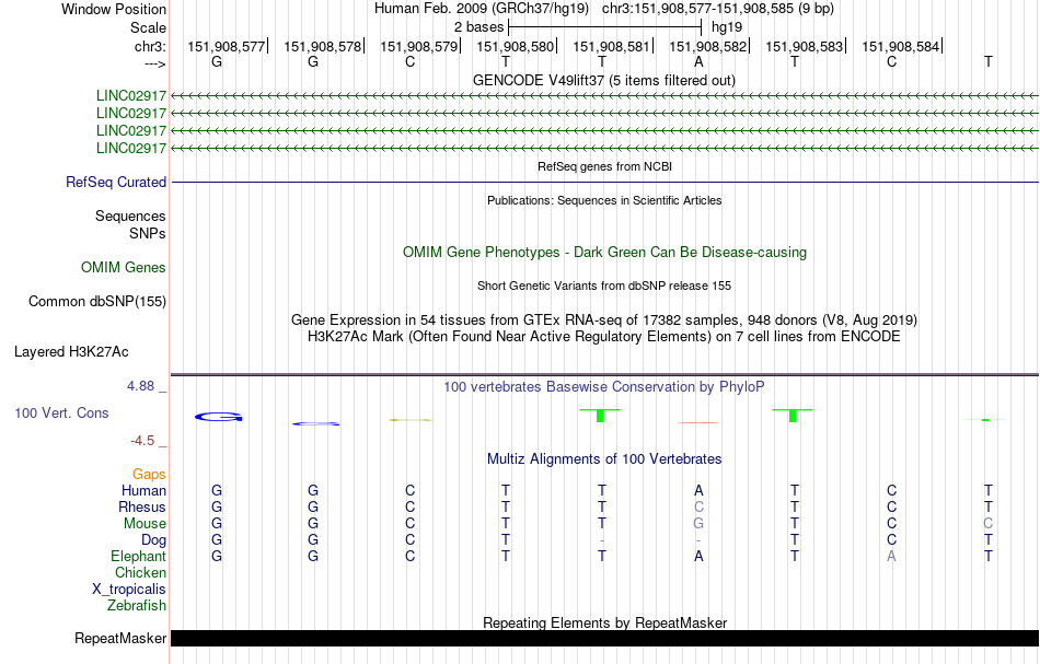- GATA3[chr3:151908577-151908585]