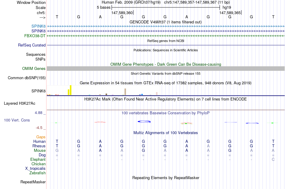 - SP1[chr5:147589357-147589367]