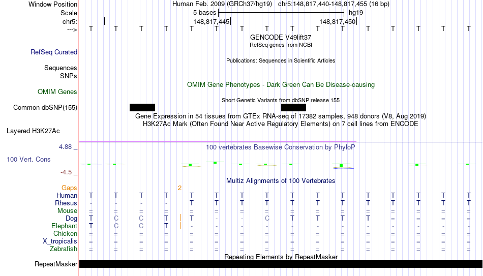 - FOXP1[chr5:148817440-148817455]