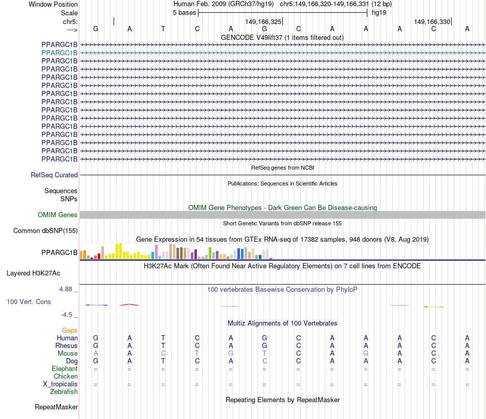 - FOXA1[chr5:149166320-149166331]