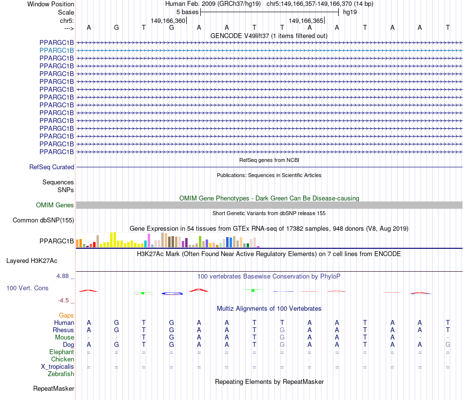- HNF1B[chr5:149166357-149166370]