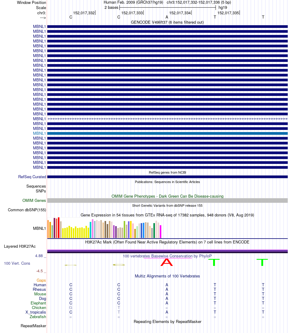 - YY1[chr3:152017332-152017336]