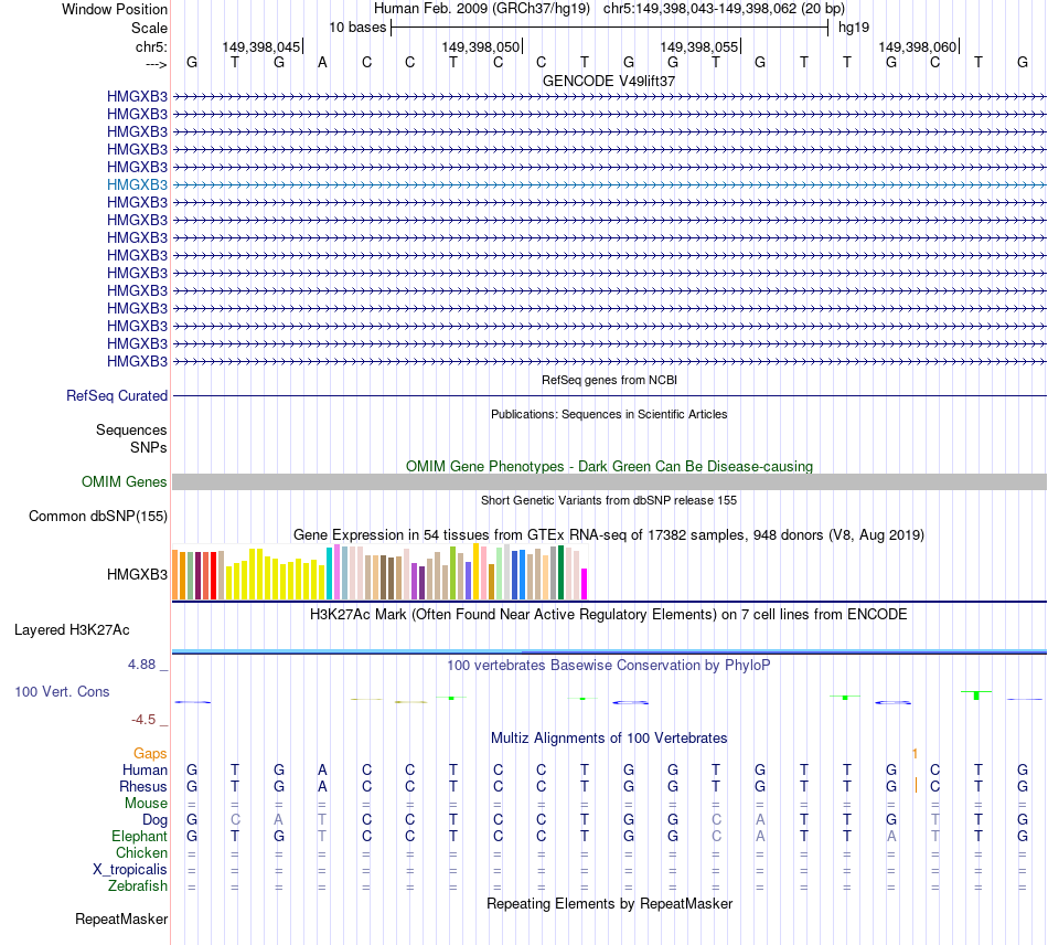 - CTCF[chr5:149398043-149398062]