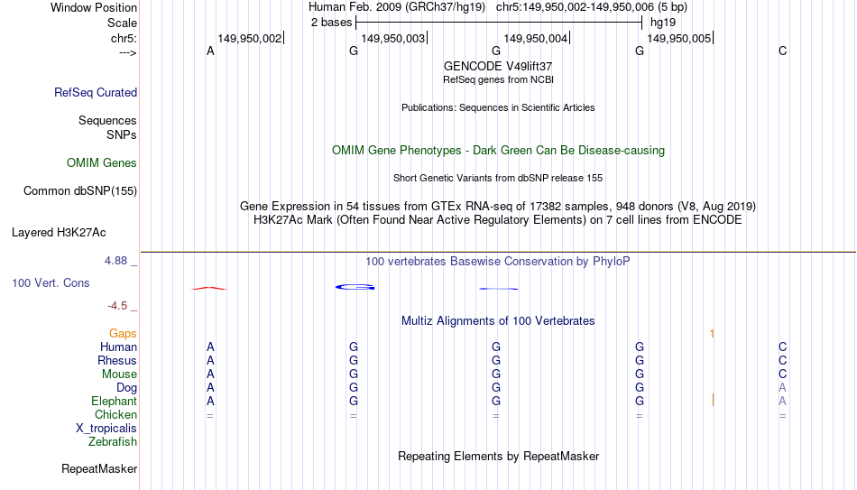 - LFA1[chr5:149950002-149950006]