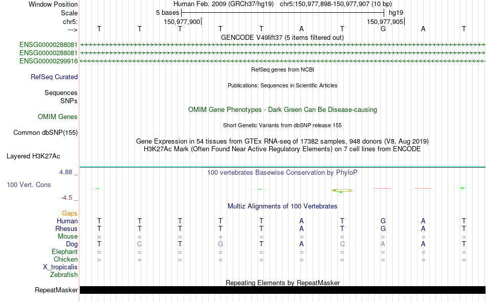 - CDX1[chr5:150977898-150977907]