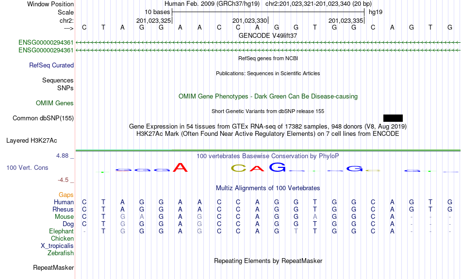 - CTCF[chr2:201023321-201023340]