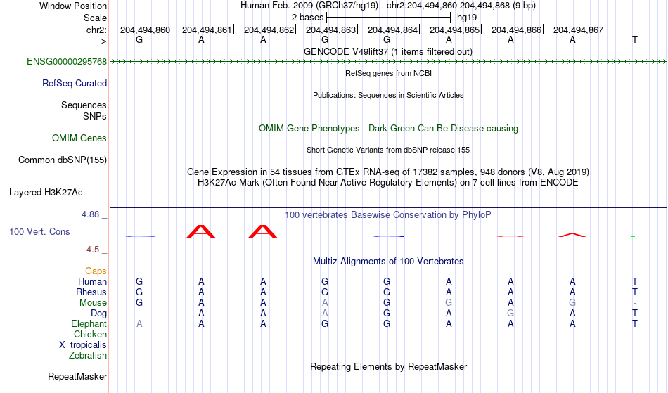 - FEV[chr2:204494860-204494868]