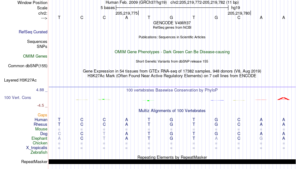 - MAX[chr2:205219772-205219782]