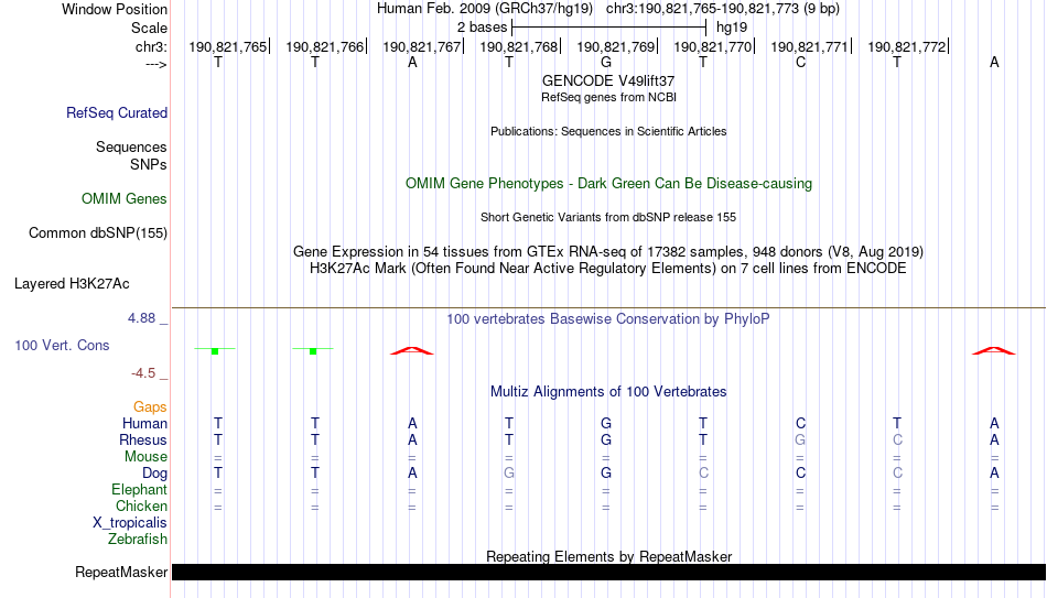 - FOXL1[chr3:190821765-190821773]